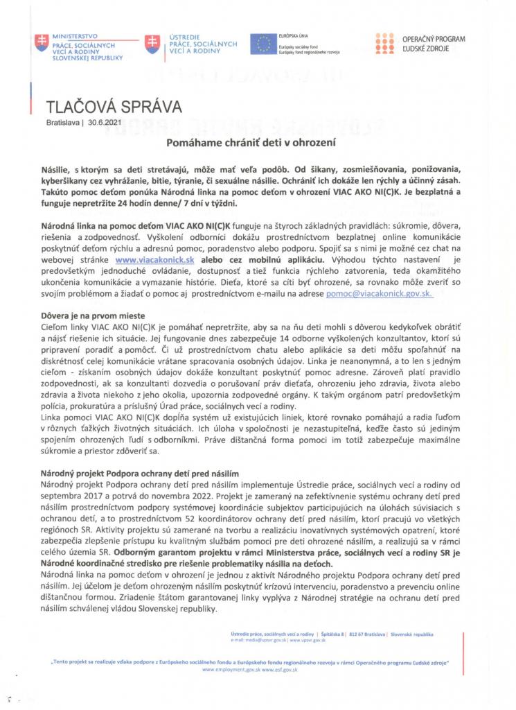 Cieľom linky VIAC AKO NI(C)K je pomáhať nepretržite, aby sa na ňu deti mohli s dôverou kedykoľvek obrátiť a nájsť riešenie
