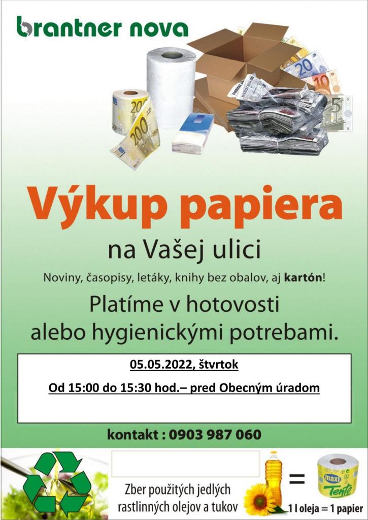 Výkup papiera a jedlého oleja sa uskutoční v našej obci dňa 28.9.2022 v čase od 15.00 do 15.30 hod. pred obecným úradom